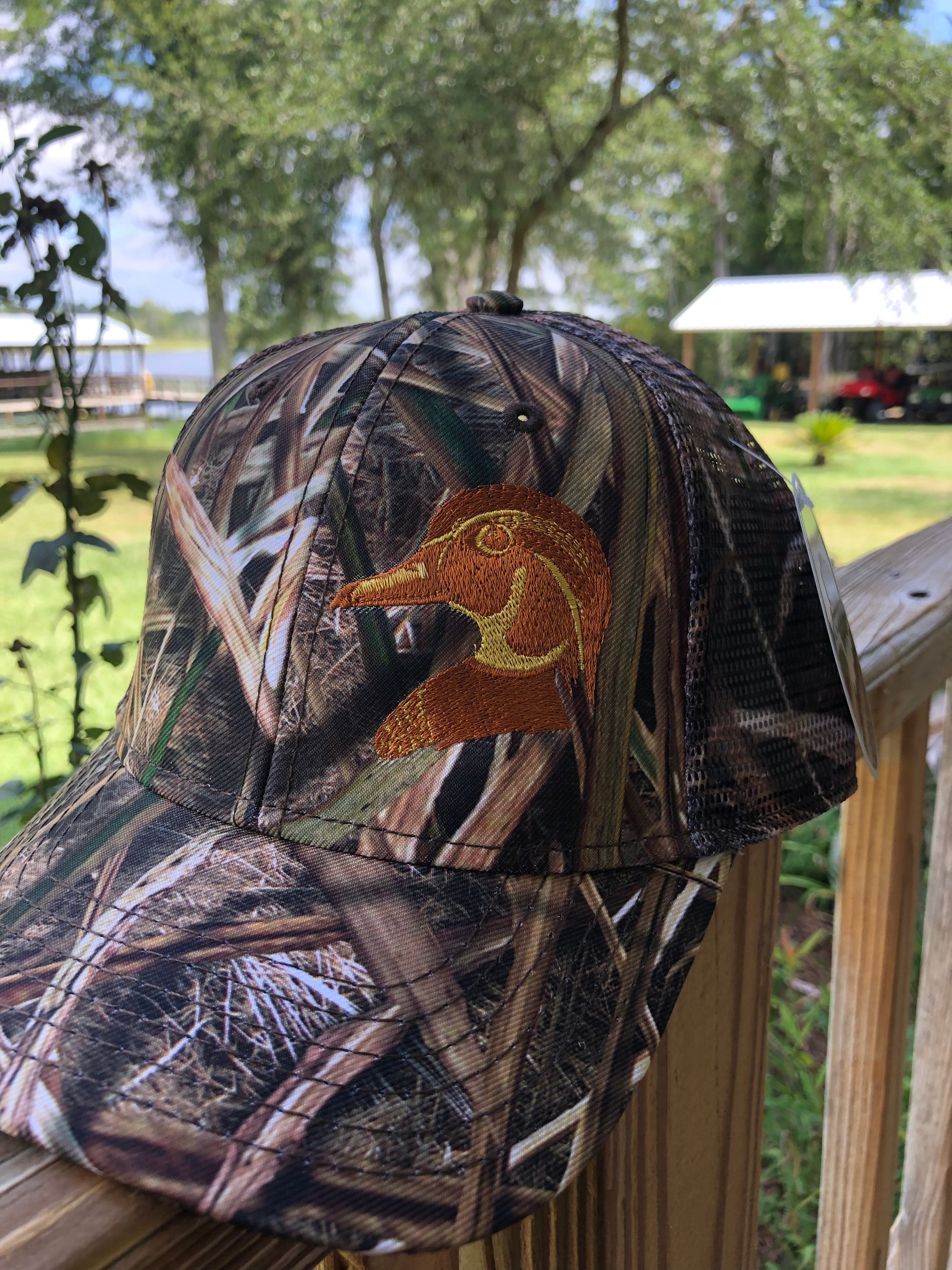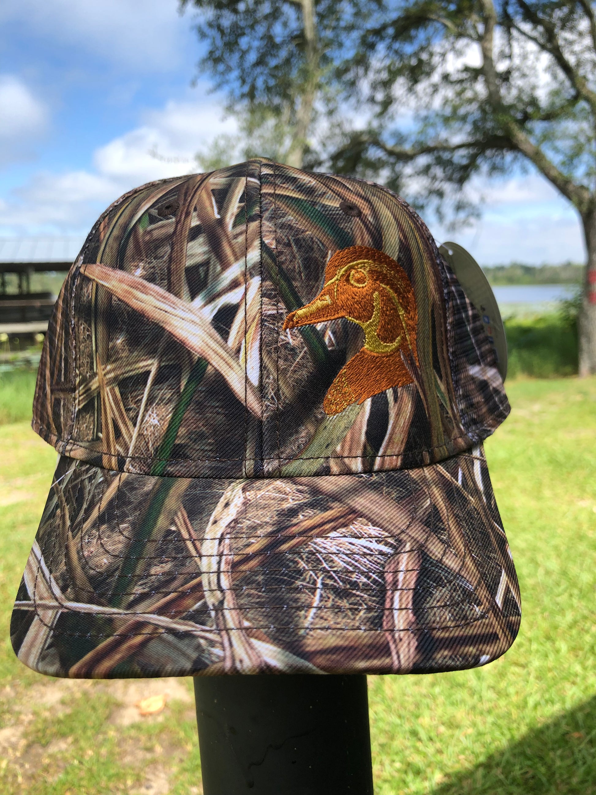 Mossy Oak Blades 6 panel Otto Cap with matching mesh back. Two Tone Wood Duck design on the front left side.